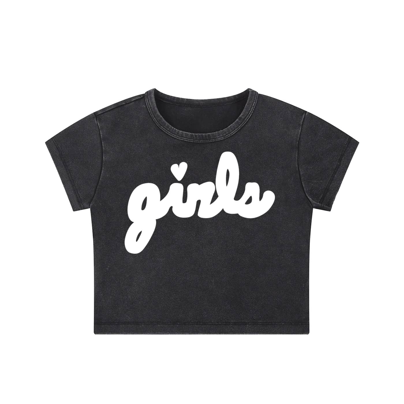 Fitted, cute & snow-washed vintage vibe. Available in black or pink w/ our hand-drawn girls logo in white on front. Ships same day free.